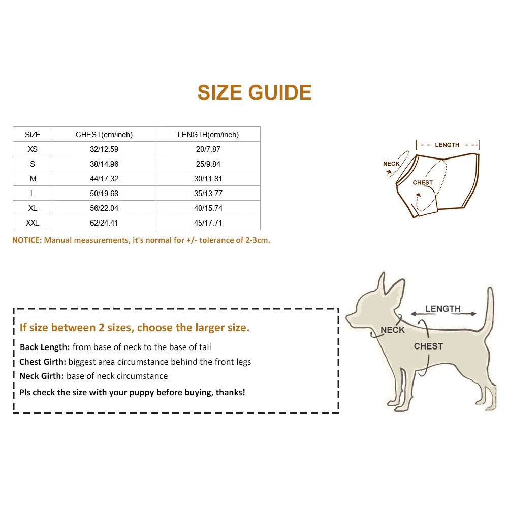 XL: Chest 22.04"/56cm, Length 15.74"/40cm