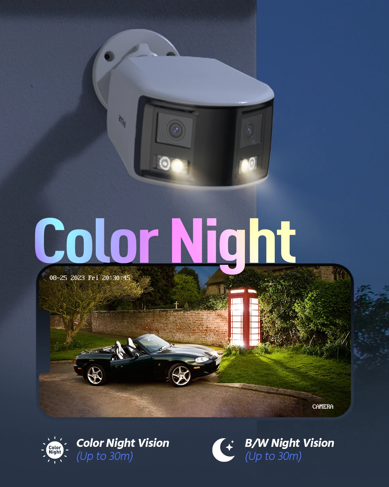 This dual-lens security cam combines two 1/2.5" BSI sensors into ONE stunning 180° feed without any distortion! Farewell to those regular cams of 90° views in 1080p clarity; cuz this is an ideal choice for your home or business!