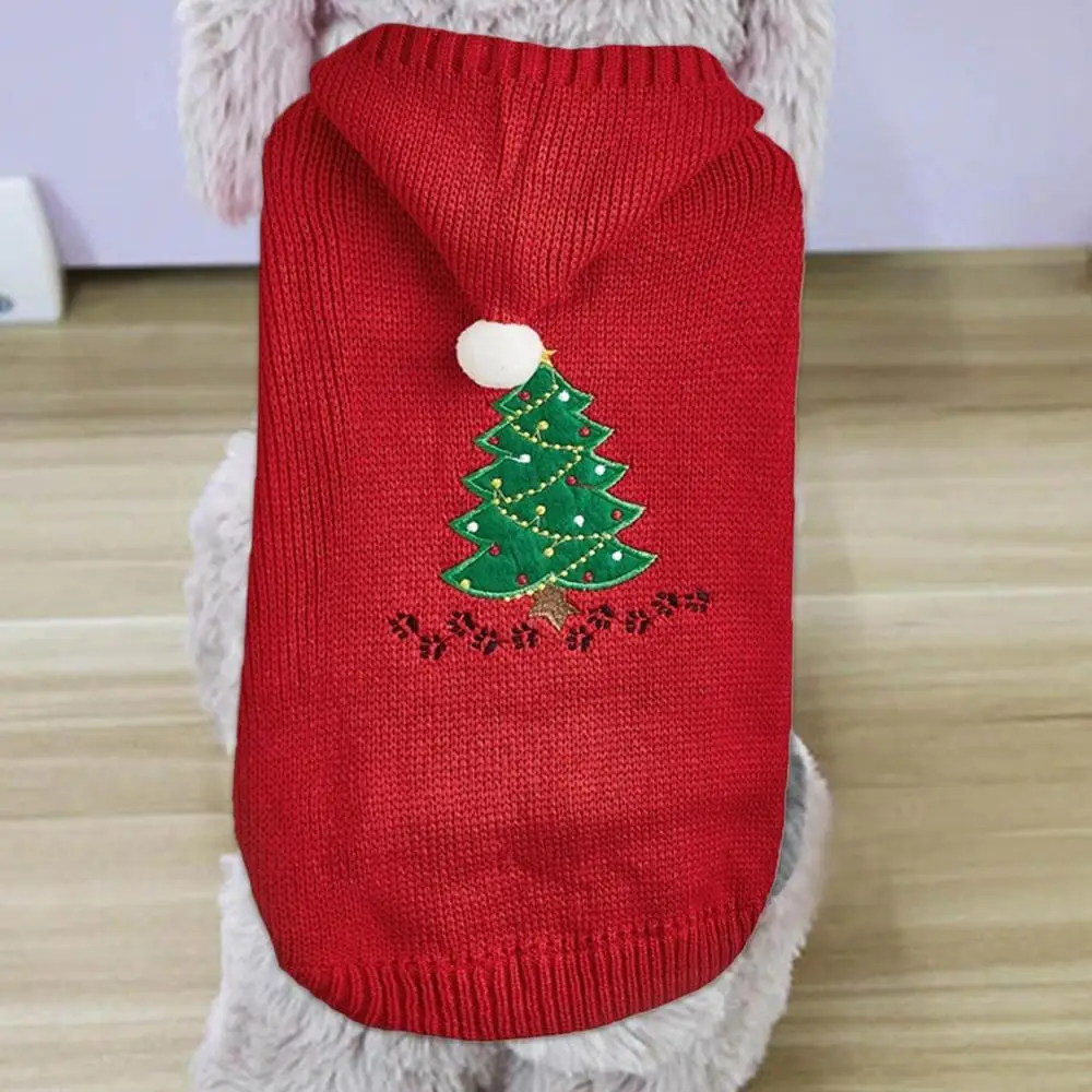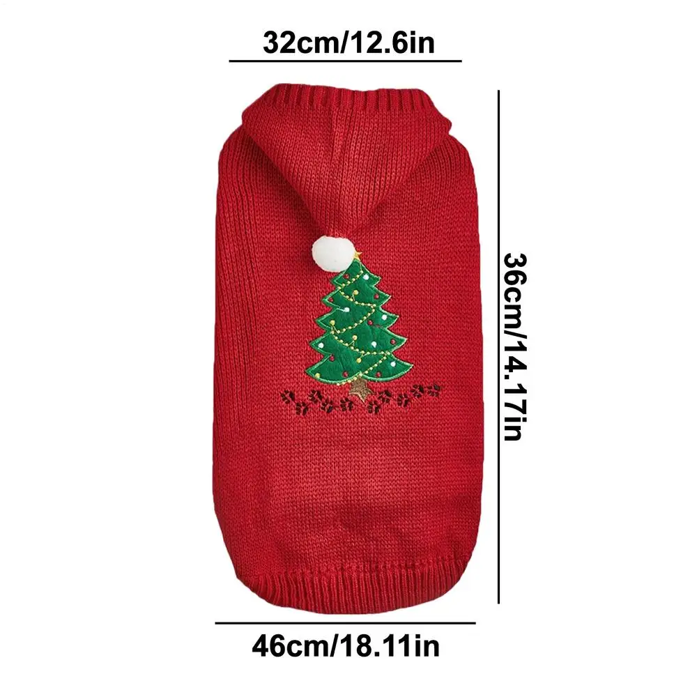1.Festive Delight: Crafted with bright red knitted fabric and adorned with a classic Christmas tree pattern, this Dog Christmas Sweater creates a strong festive atmosphere